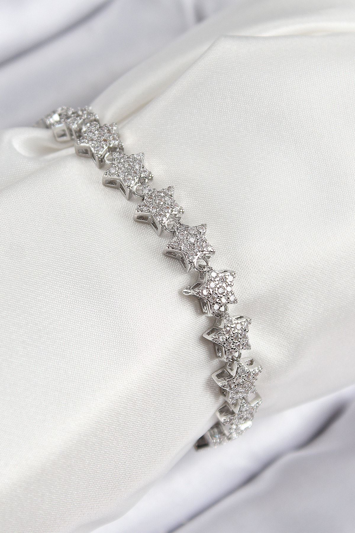 YRTCL VIP Seri Pirinç Zirkon Taşlı Sıralı Yıldız Model Gümüş Renk Kadın Bileklik
