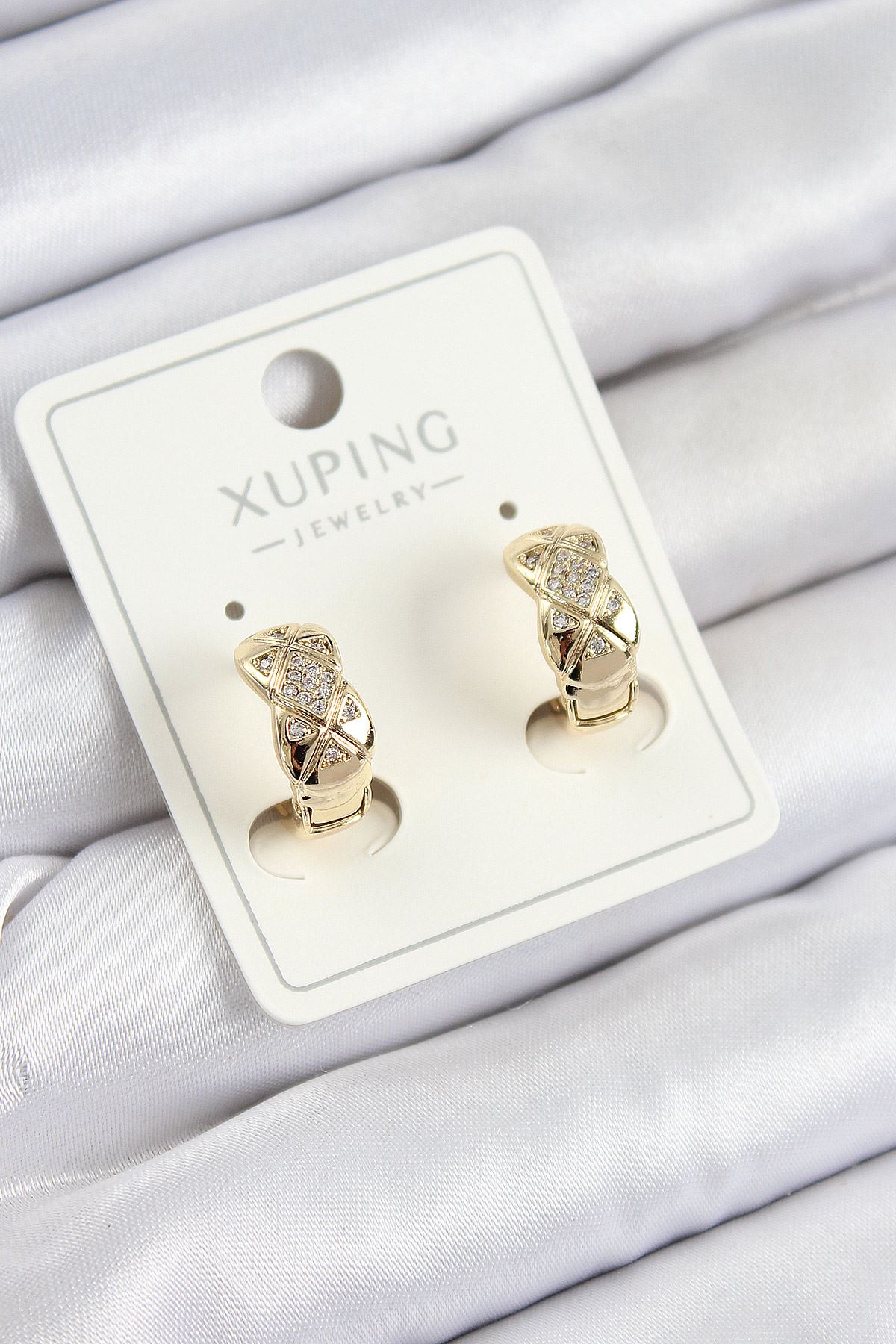 YRTCL Xuping Zirkon Taşlı Geometrik Desenli Halka Model Gold Renk Kadın Küpe