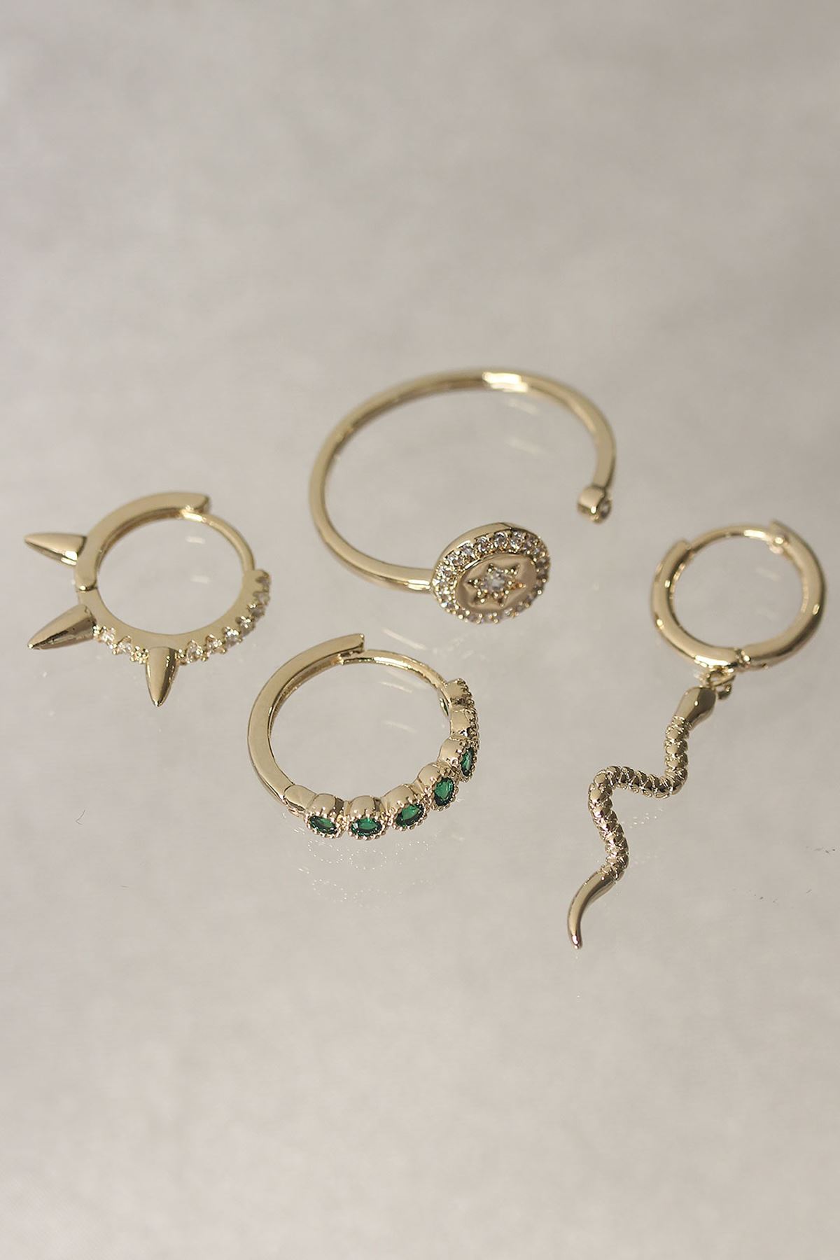 YRTCL Yeşil Zirkon Taş Detaylı Yılan Model Küpe ve Yüzük Seti