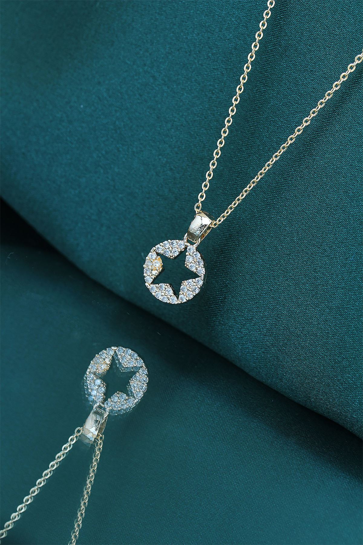 YRTCL Vip Seri Pirinç Çift Renk Zirkon Taşlı Yıldız Tasarımlı Kolye